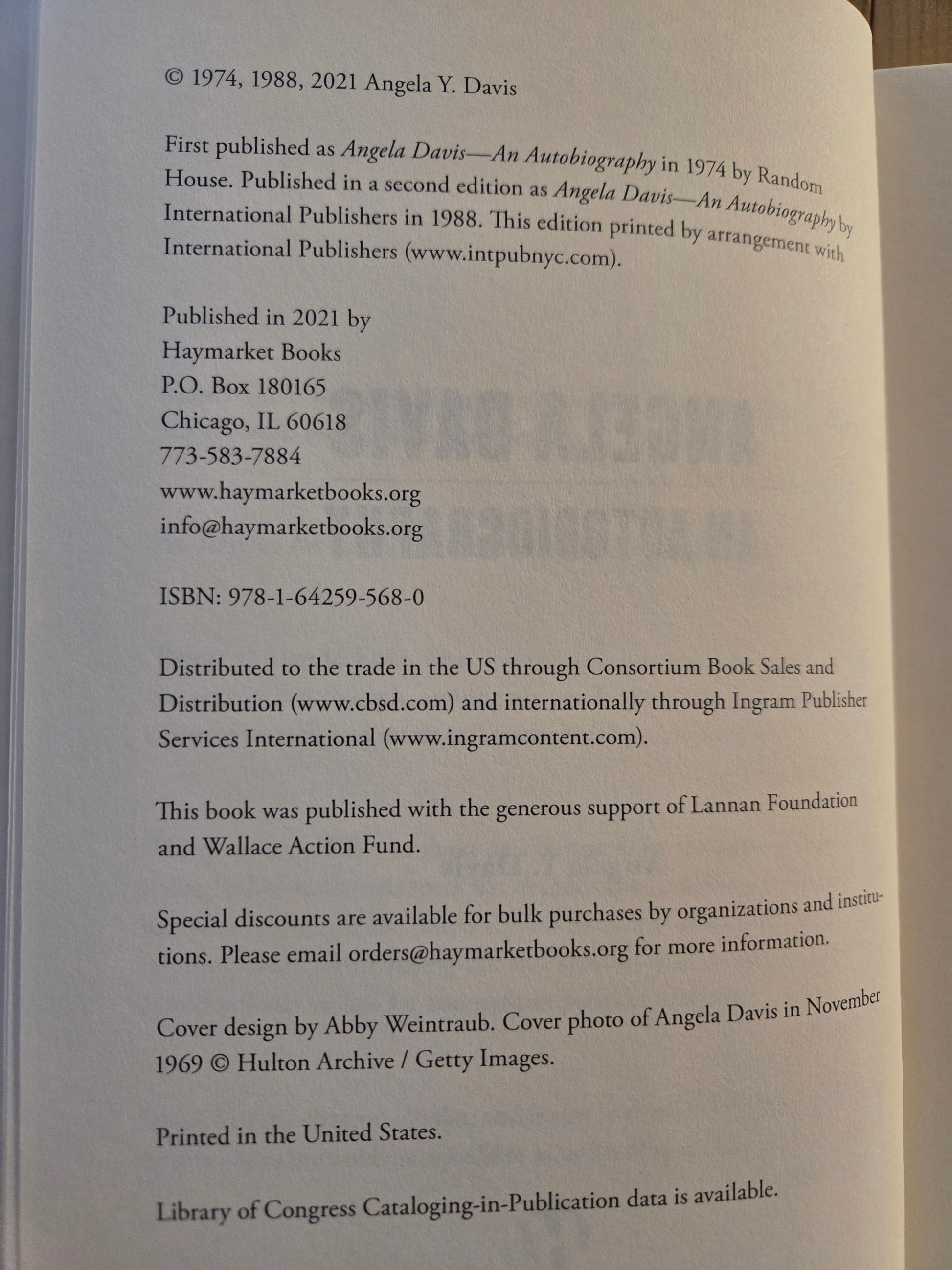 Davis' vital autobiography, first published in 1974 -- and edited by Toni Morrison. This hardcover book includes the preface to the first edition (1974), second edition (1988), and this most recent third edition (2021).