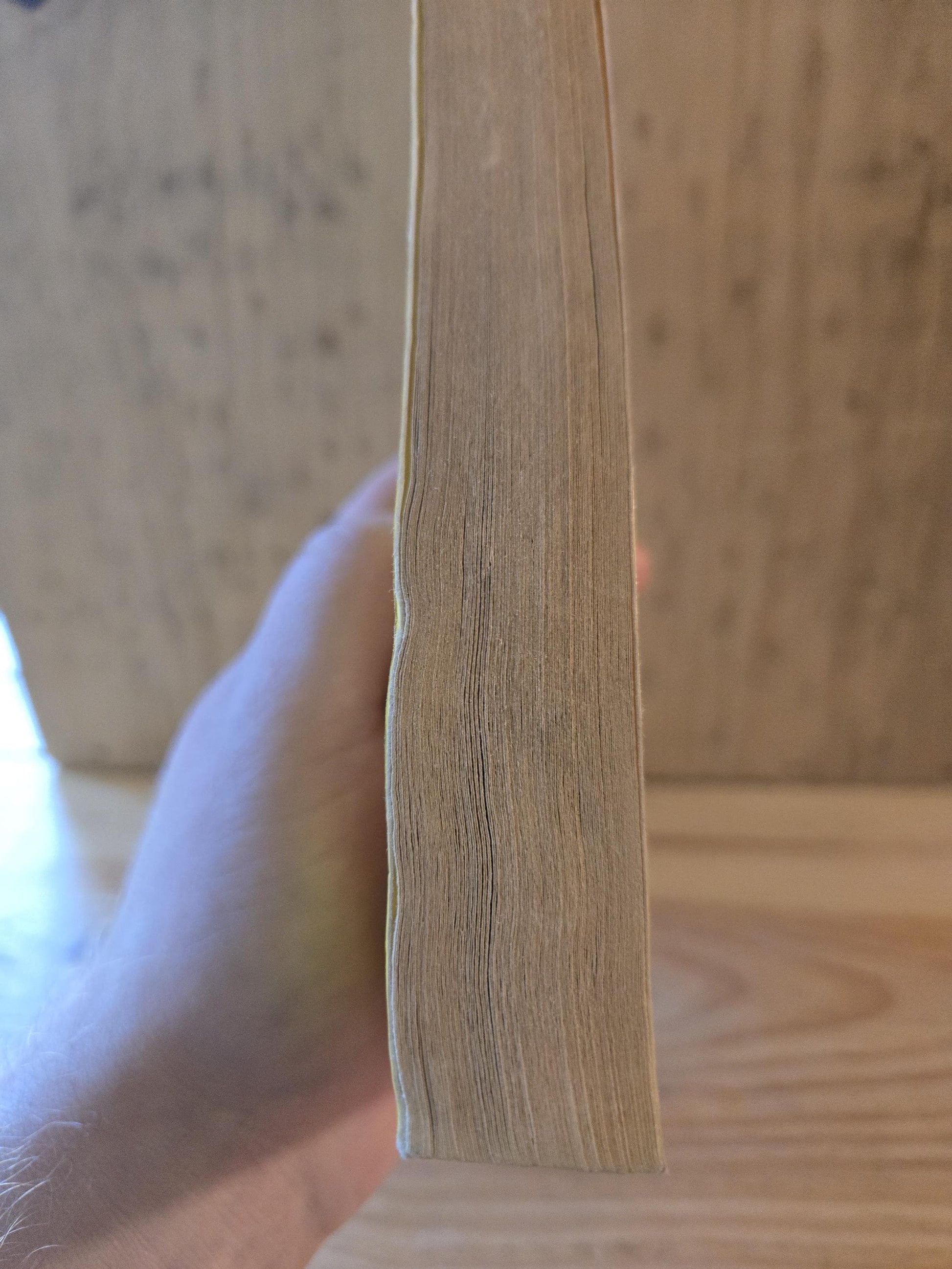 Good condition overall with some wear and tear to the covers and spine. Slight curling to the corners. Pencil marking on the first page. Some wrinkling/waviness to the pages, particularly on the outer side edge and right side of pages.