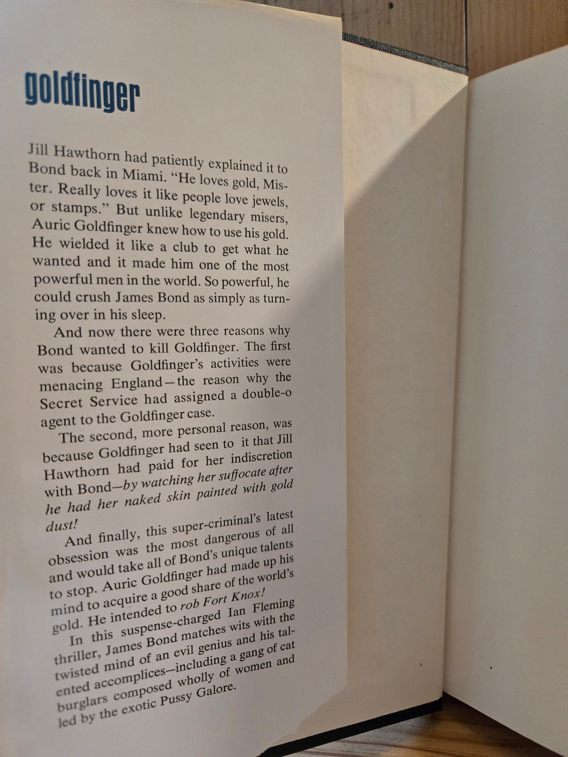 The James Bond novel "Goldfinger" by Ian Fleming.