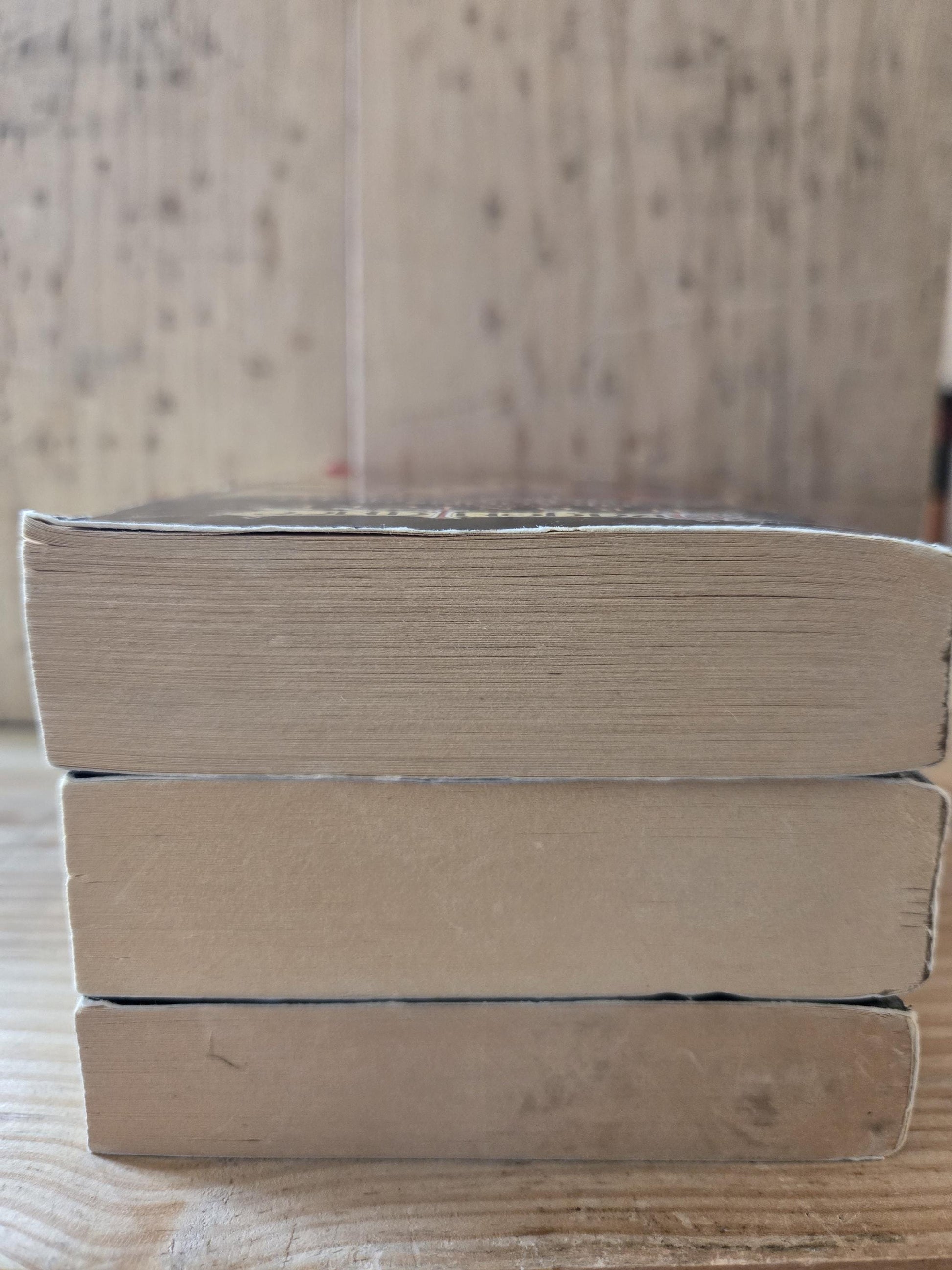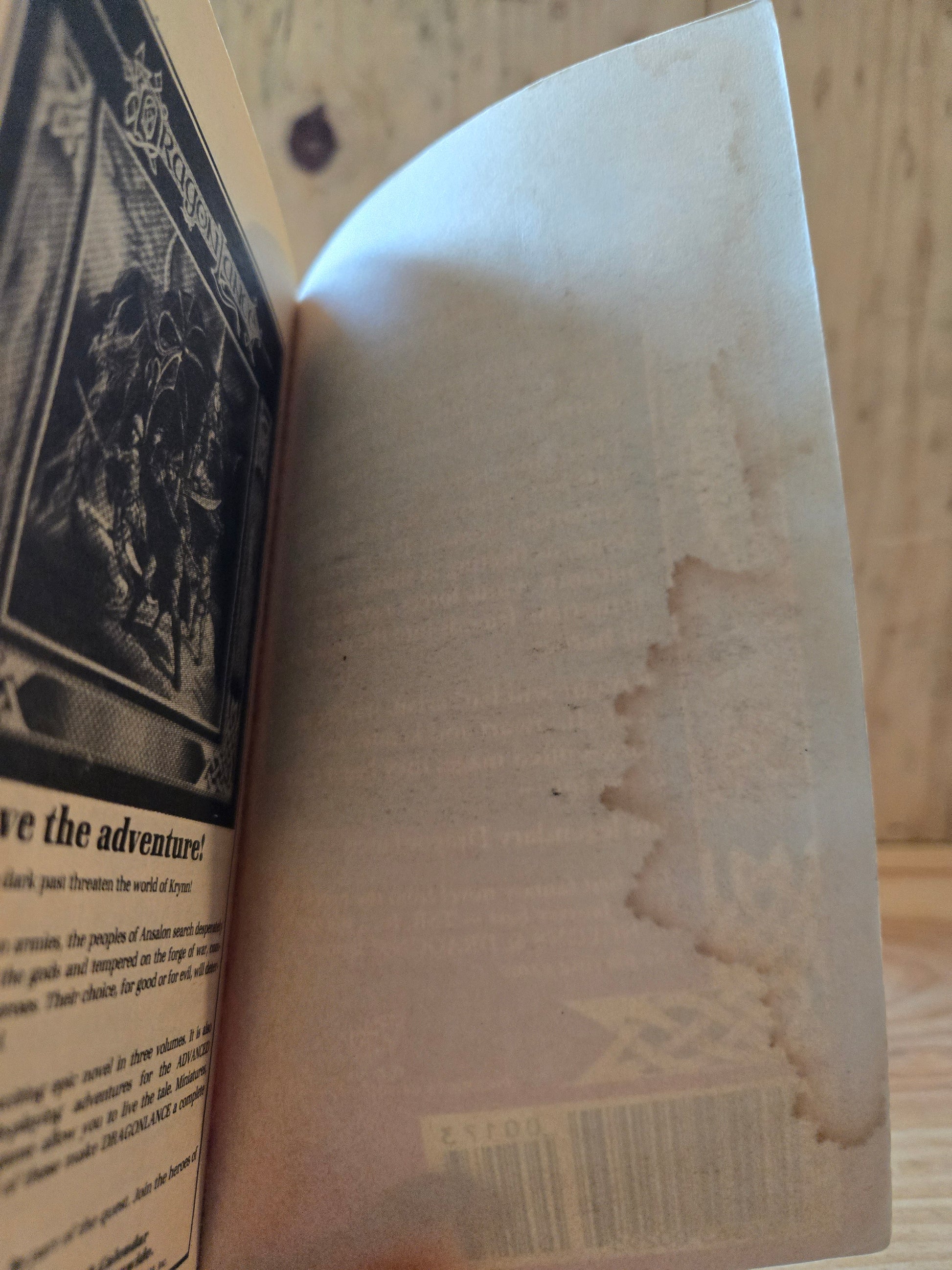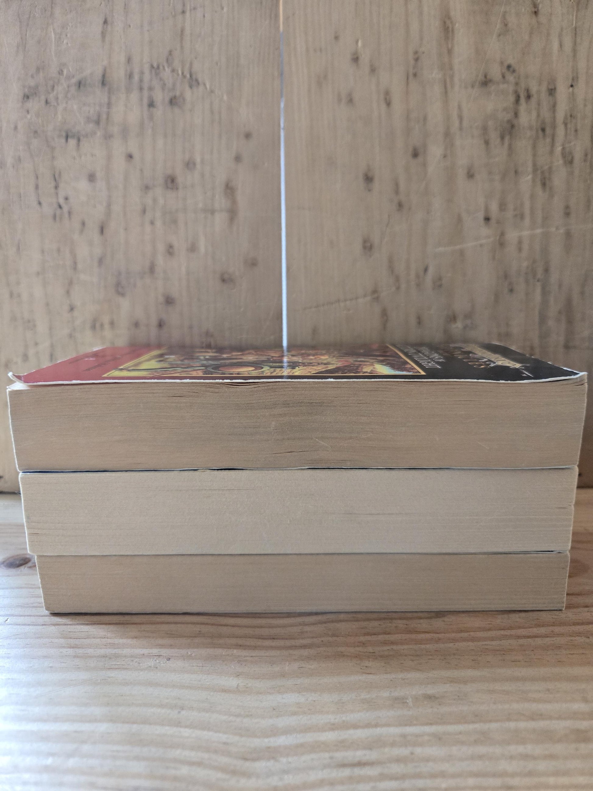 Good condition overall with a bit of wear and tear to the covers and spines. Slight curling to the corners. Some discoloration to the top outer edge of pages of "Dragons of Spring Dawning." Pencil erasure marks on the first page of each book. Yellowing to the pages. Significant staining on the inside of back cover of "Dragons of Autumn Twilight."