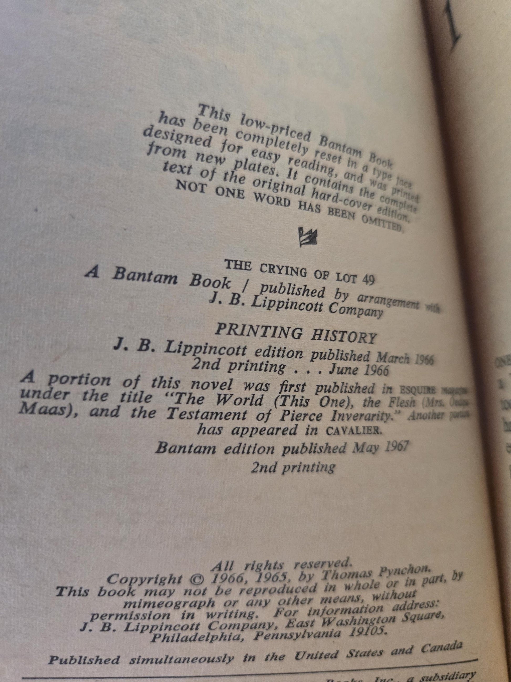 The Crying of Lot 49 // Thomas Pynchon // 2nd Printing 1967 // Vintage Paperback