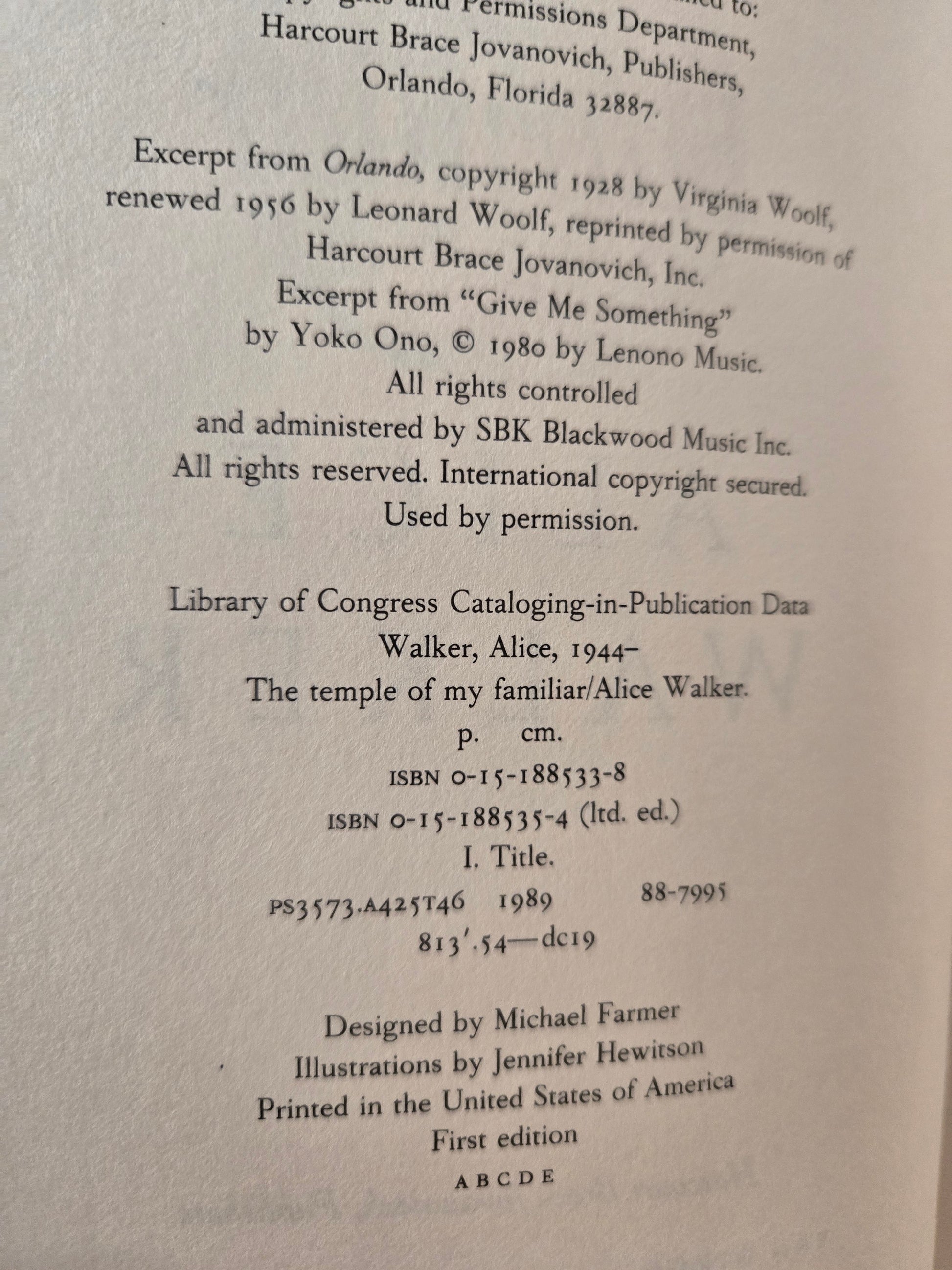 The Temple of My Familiar // Alice Walker // 1st Edition 1989 // Vintage Hardcover