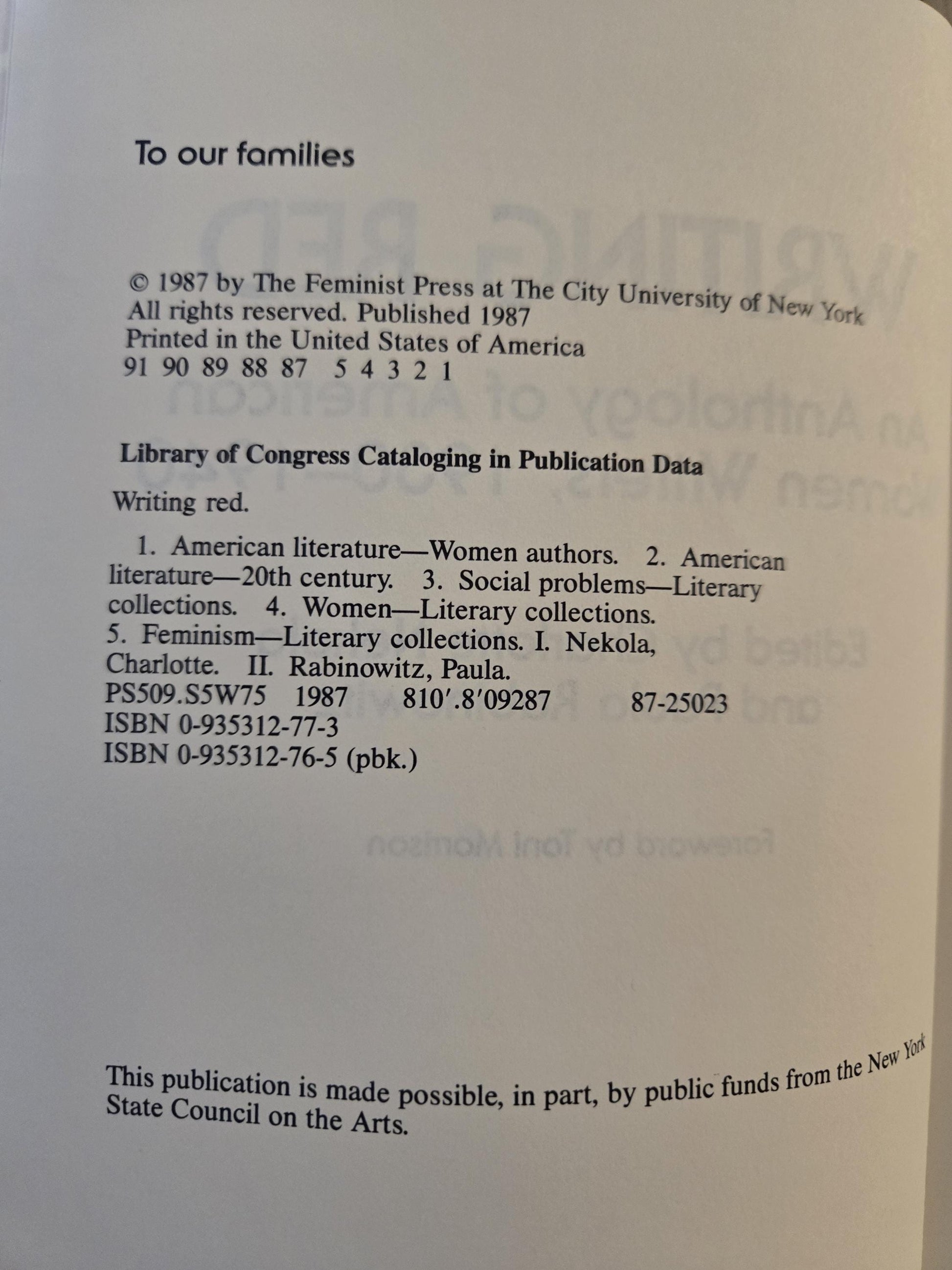 The Feminist Press: 1st Paperback Printing, 1987.